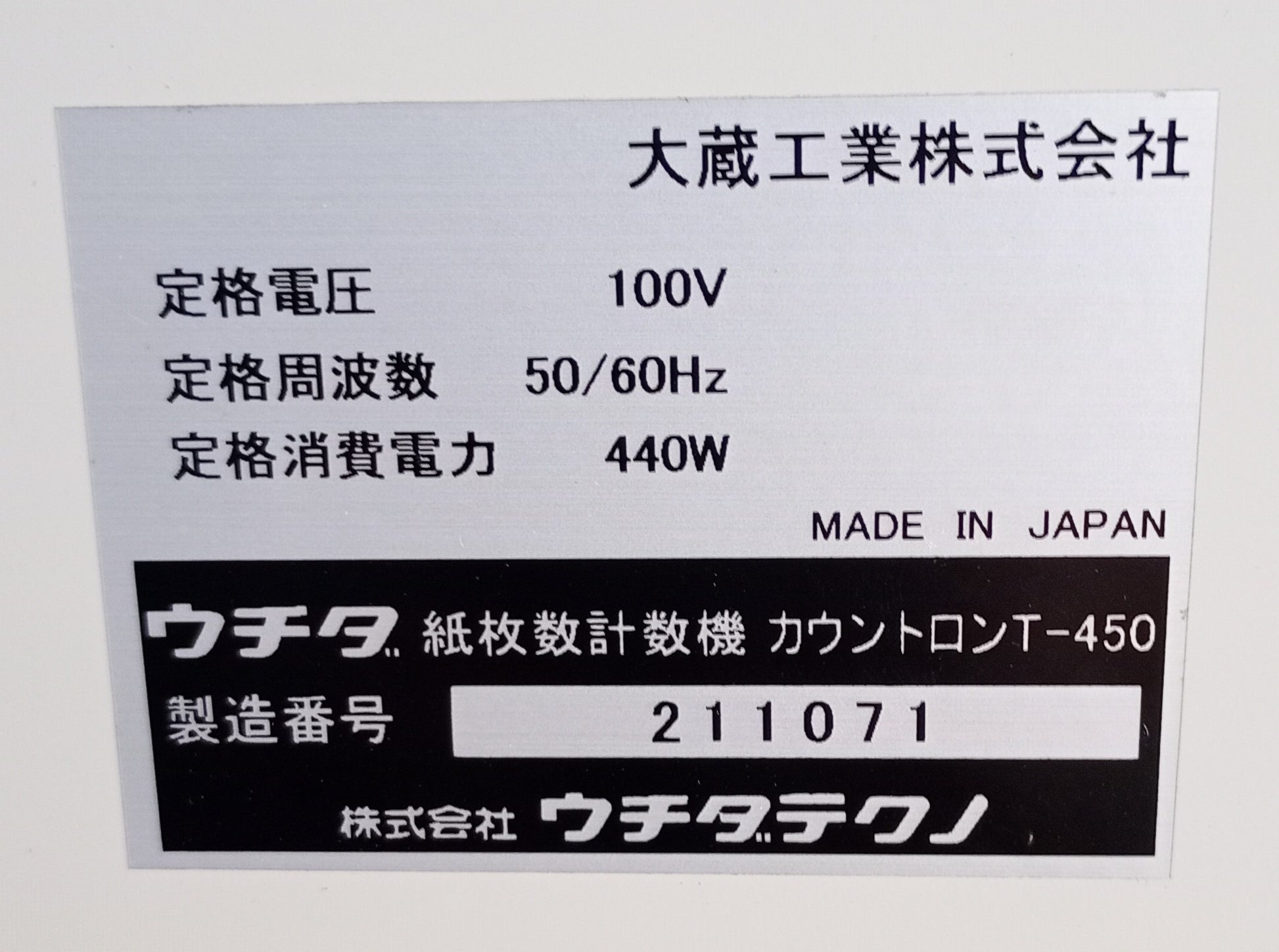 内田洋行 カウントロンT-450 枚数計数機 A3対応モデル