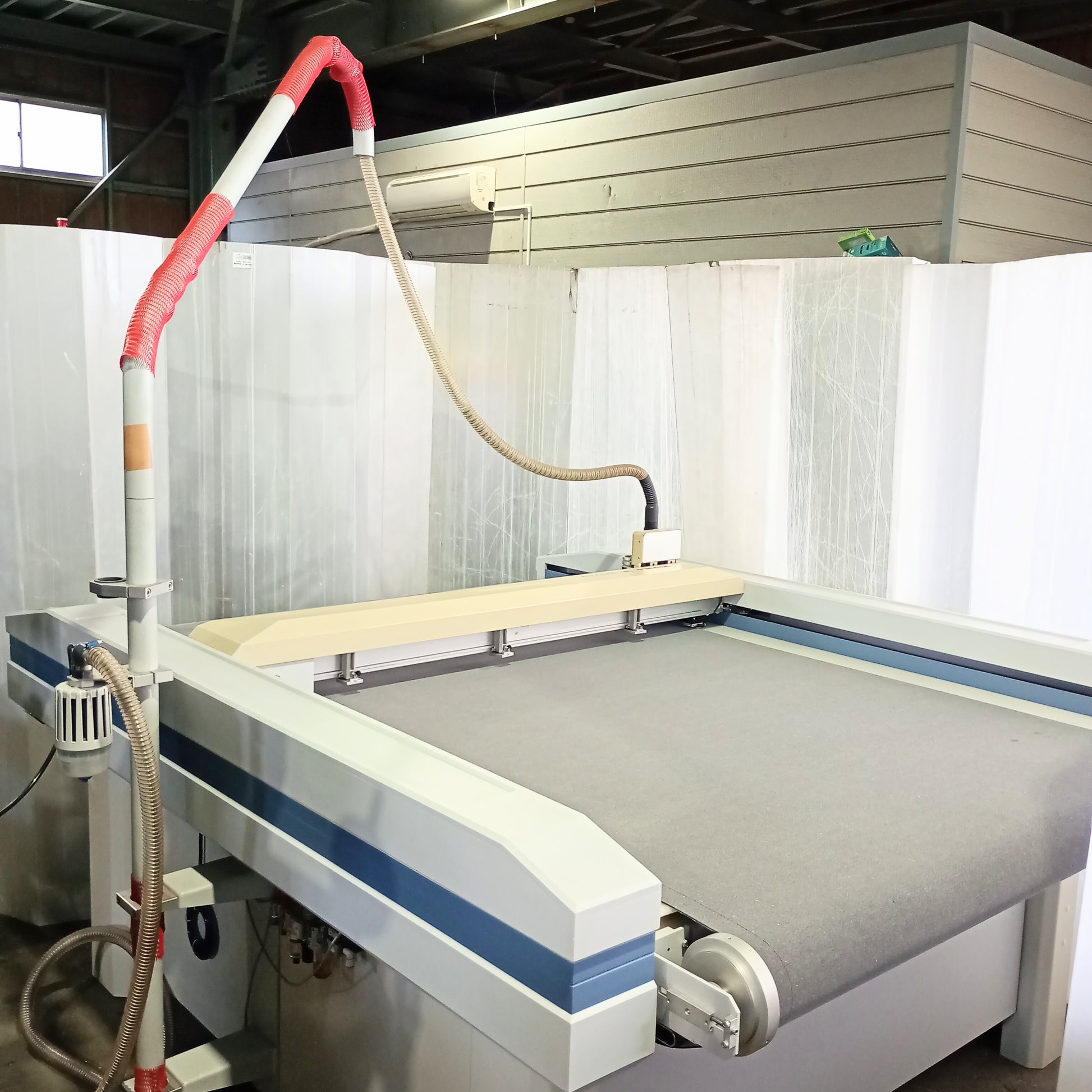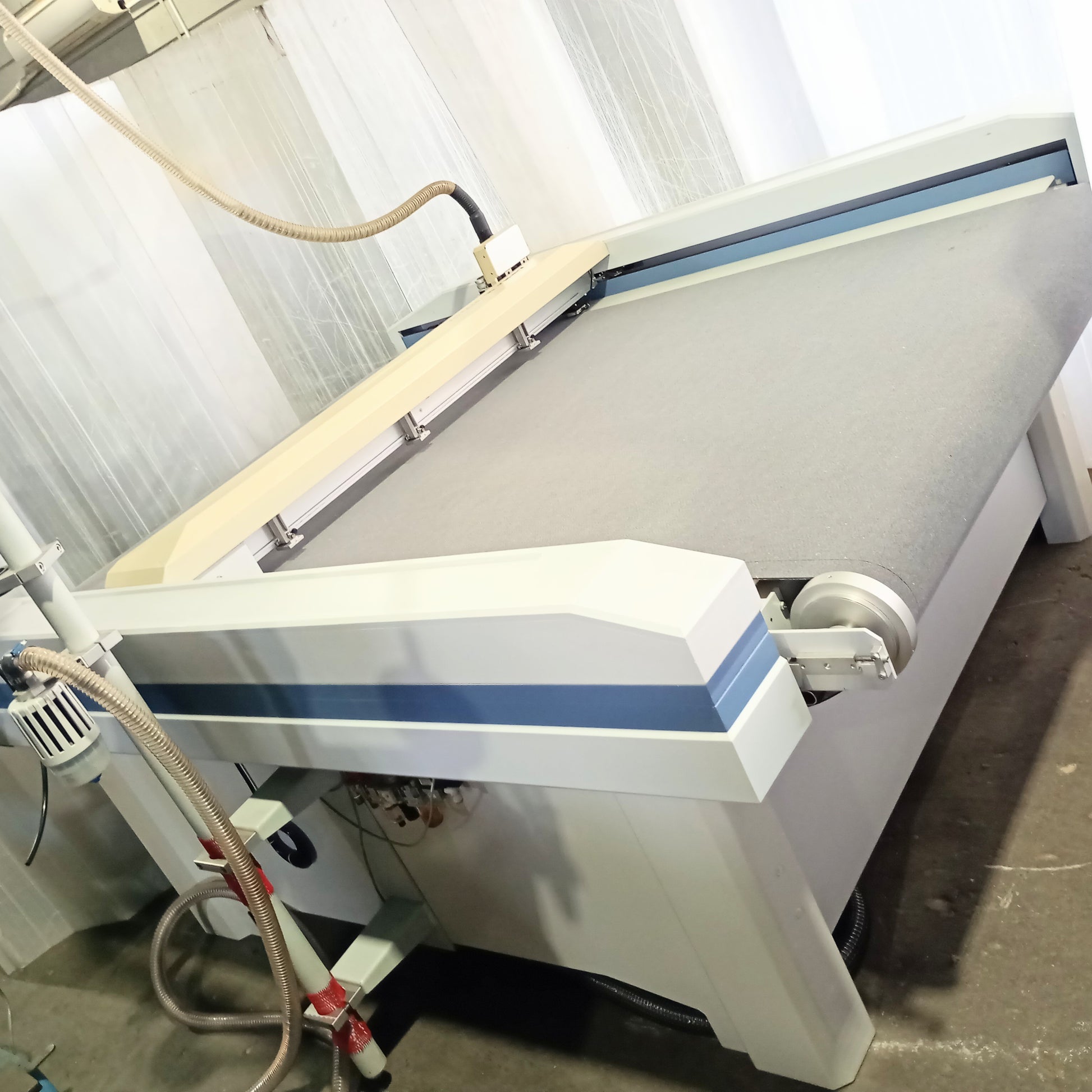 ZUND M-1600CV Z1316は、真空吸着テーブルとコンベア搬送機構を備えたフラットベッド型カッティングプロッタです。空気圧振動ナイフや描画ツールを搭載可能で、多様な素材に対応。高精度かつ効率的なカッティングを実現します。