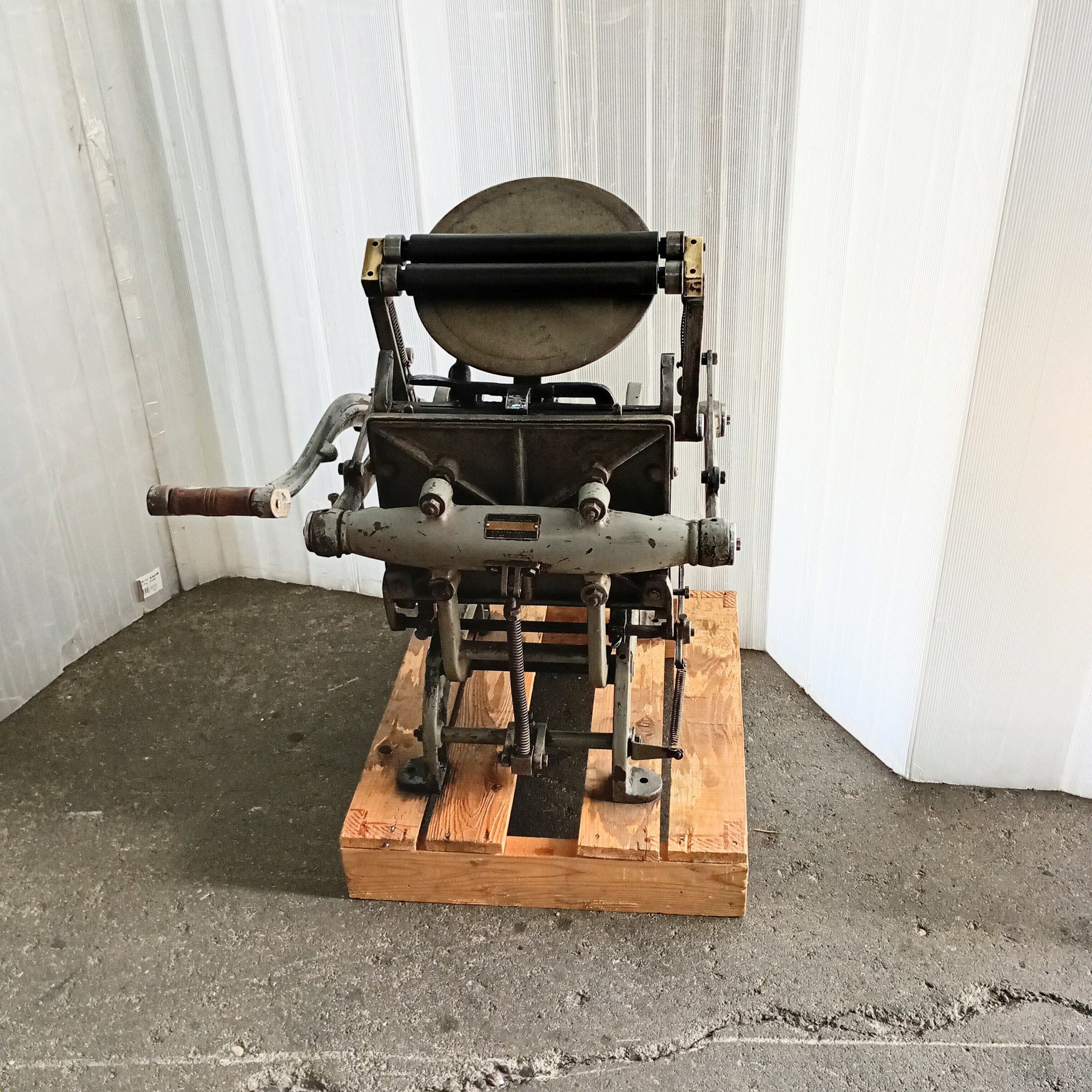 昔ながらの風合いを再現できる、手動操作の卓上型プラテン印刷機。