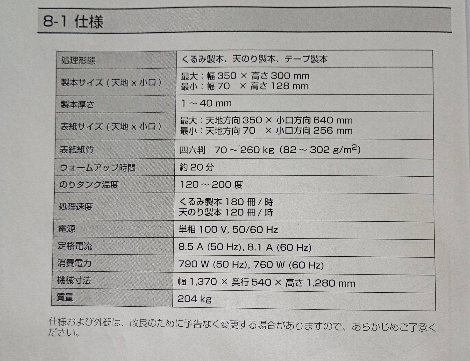 処理速度:くるみ製本 約180冊/時、天のり製本 約120冊/時