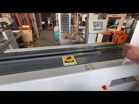 ホリゾン製の無線綴じ製本機で、くるみ製本・天のり製本・テープ製本の3方式に対応したモデルです。カラータッチパネルを搭載し、操作性にも配慮された構成となっています。