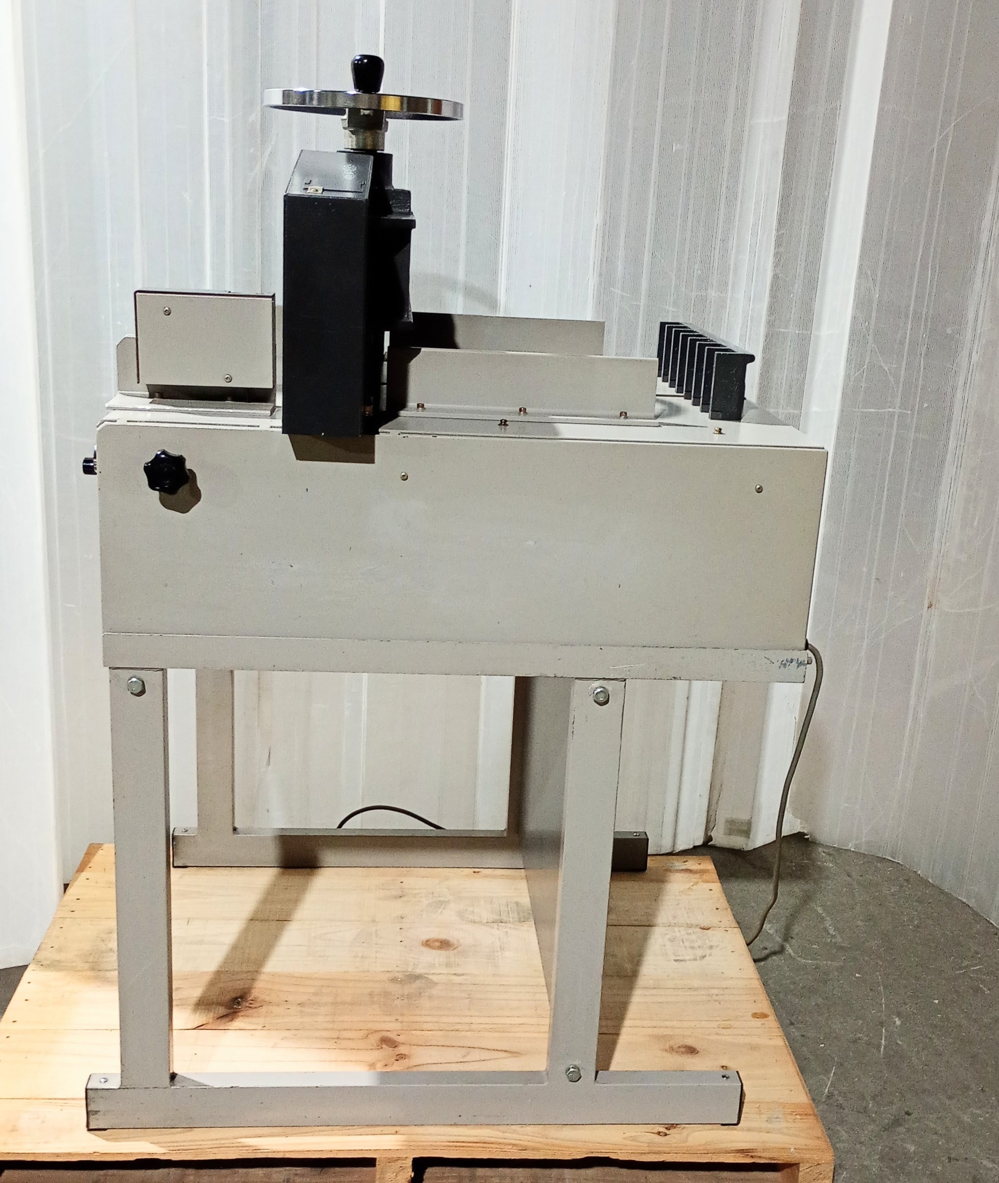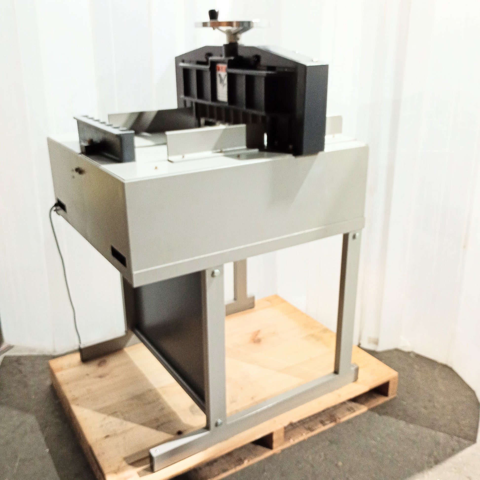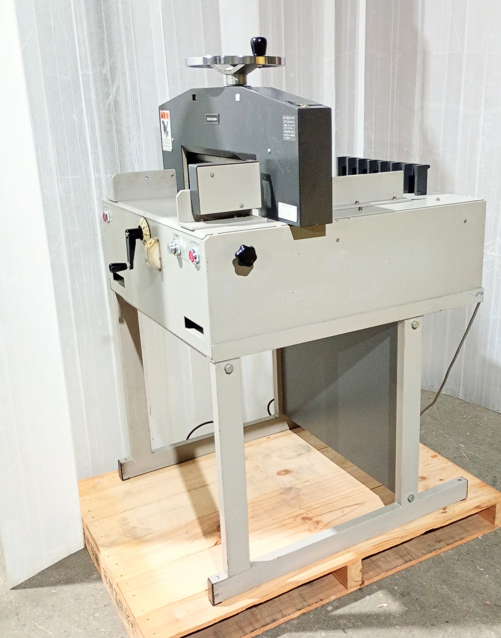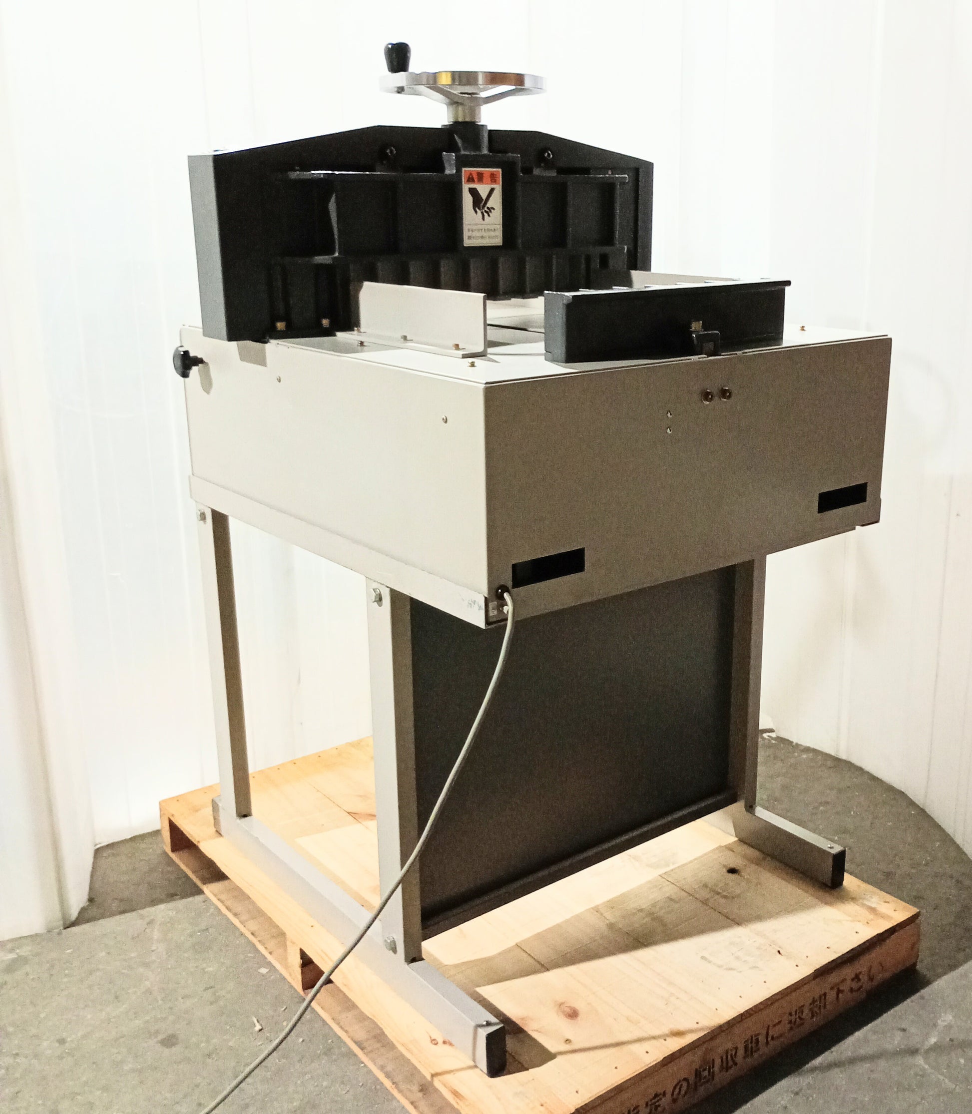 本機はA3長辺・厚さ70mmまでの用紙を断裁可能。コンパクトな筐体で設置場所を選ばず、オフィスや小規模工場などに適しています。