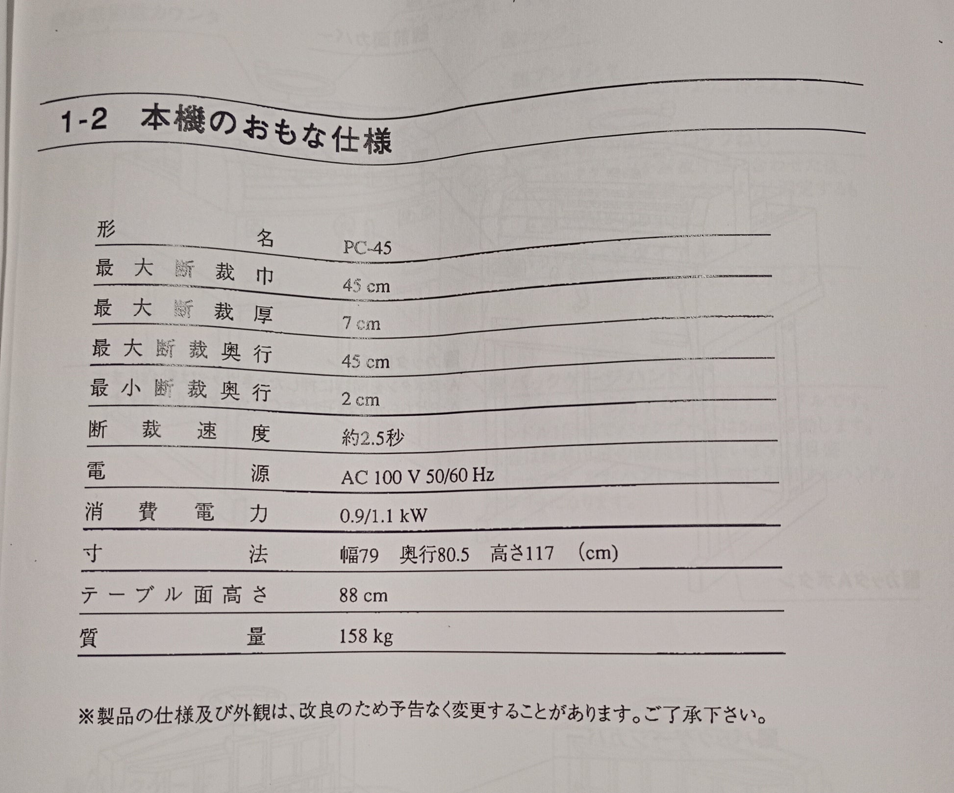 寸法や重量は、機種のマイナーチェンジ、オプション有無、カスタマイズ、機械の状態などにより、現在メーカーが発表している数値とは多少異なる場合がございます。