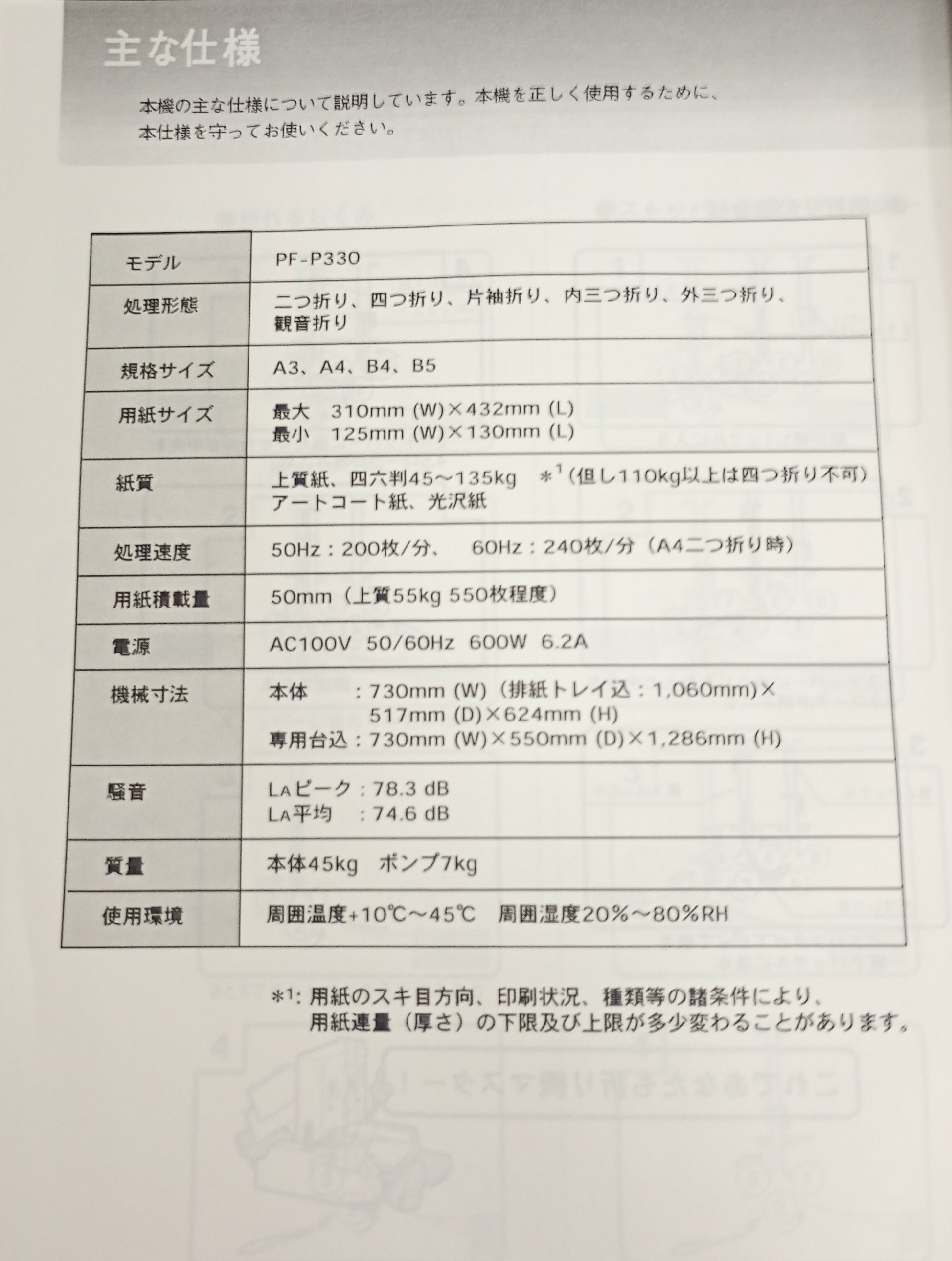 52~157g/m²までの用紙に対応し、A3からB5まで幅広いサイズを処理可能。用途に応じて、二つ折り・三つ折り・観音折りなどが行えます。