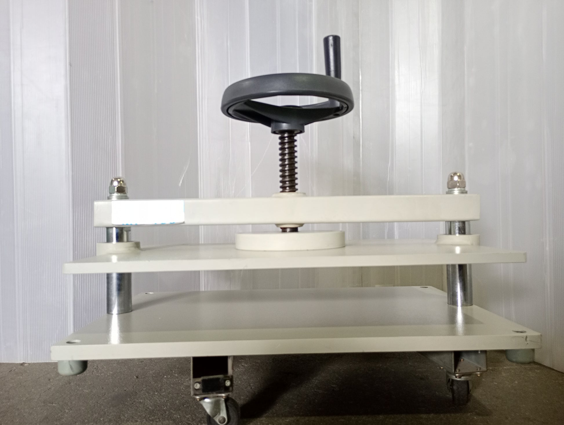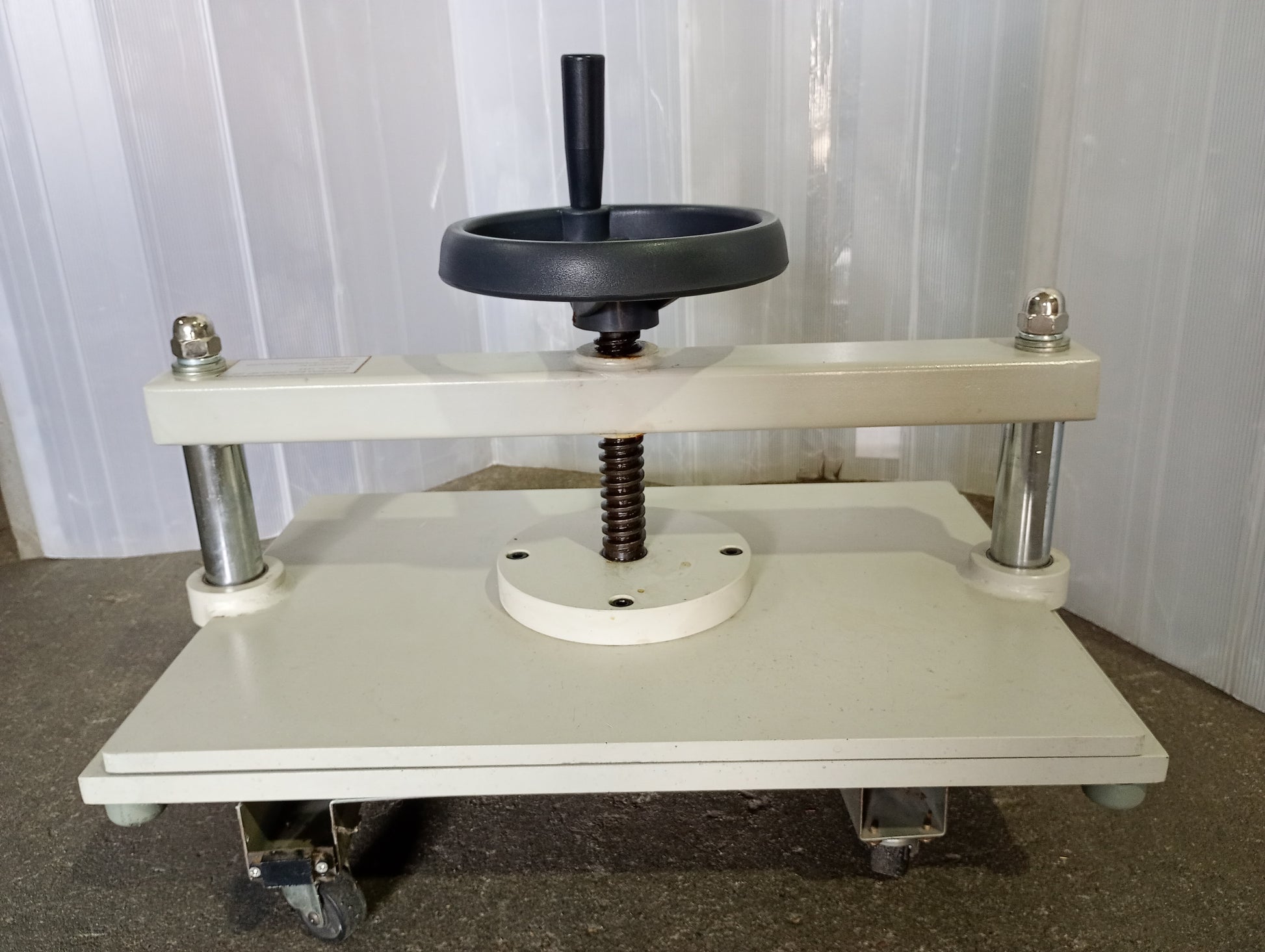 ハードカバー製本や厚物冊子の最終仕上げ工程に適した、コンパクト設計の手動プレス機です。
