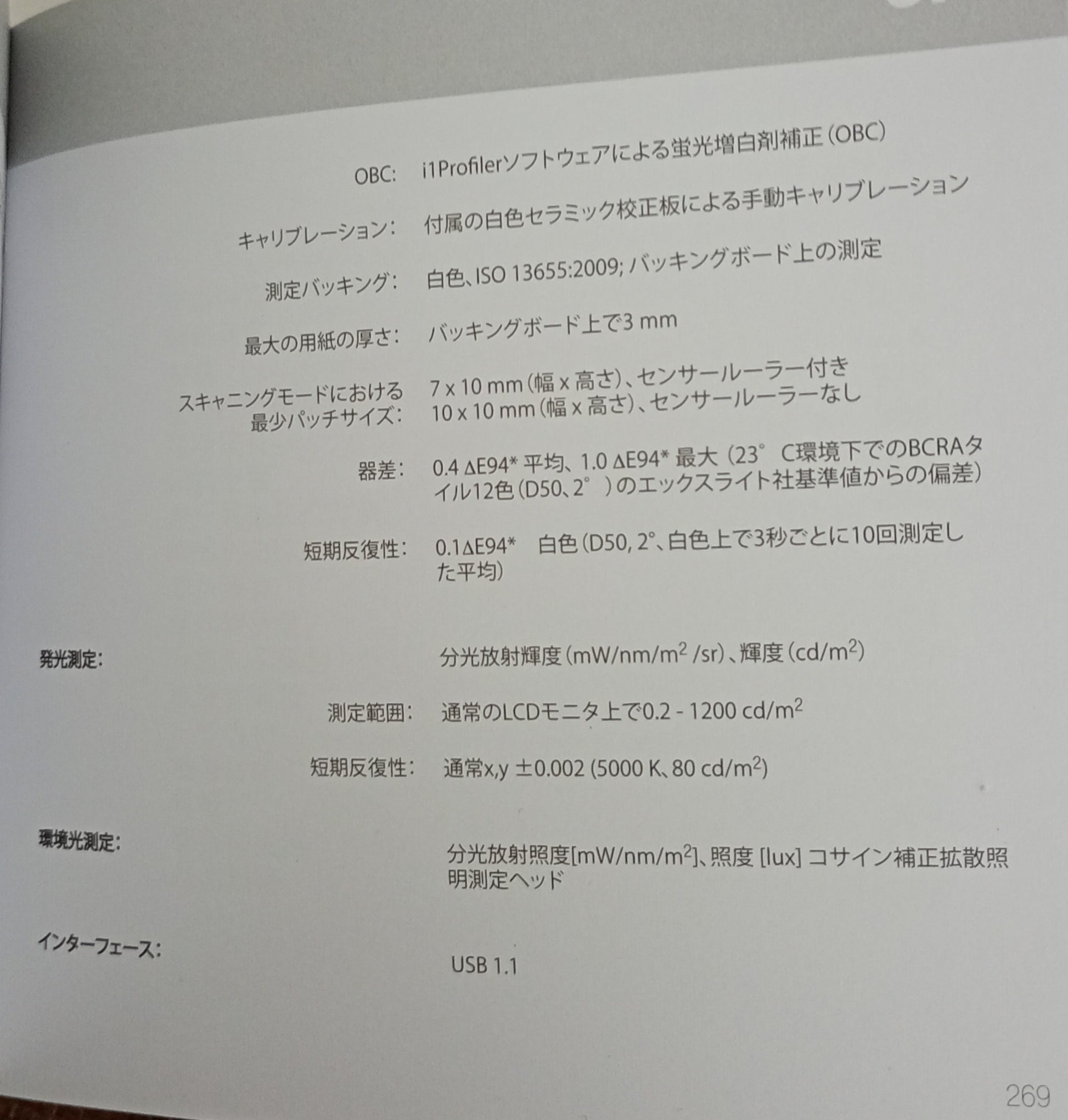 測定可能媒体:リフレクト(印刷/紙)、エミッシブ(ディスプレイ/プロジェクター)